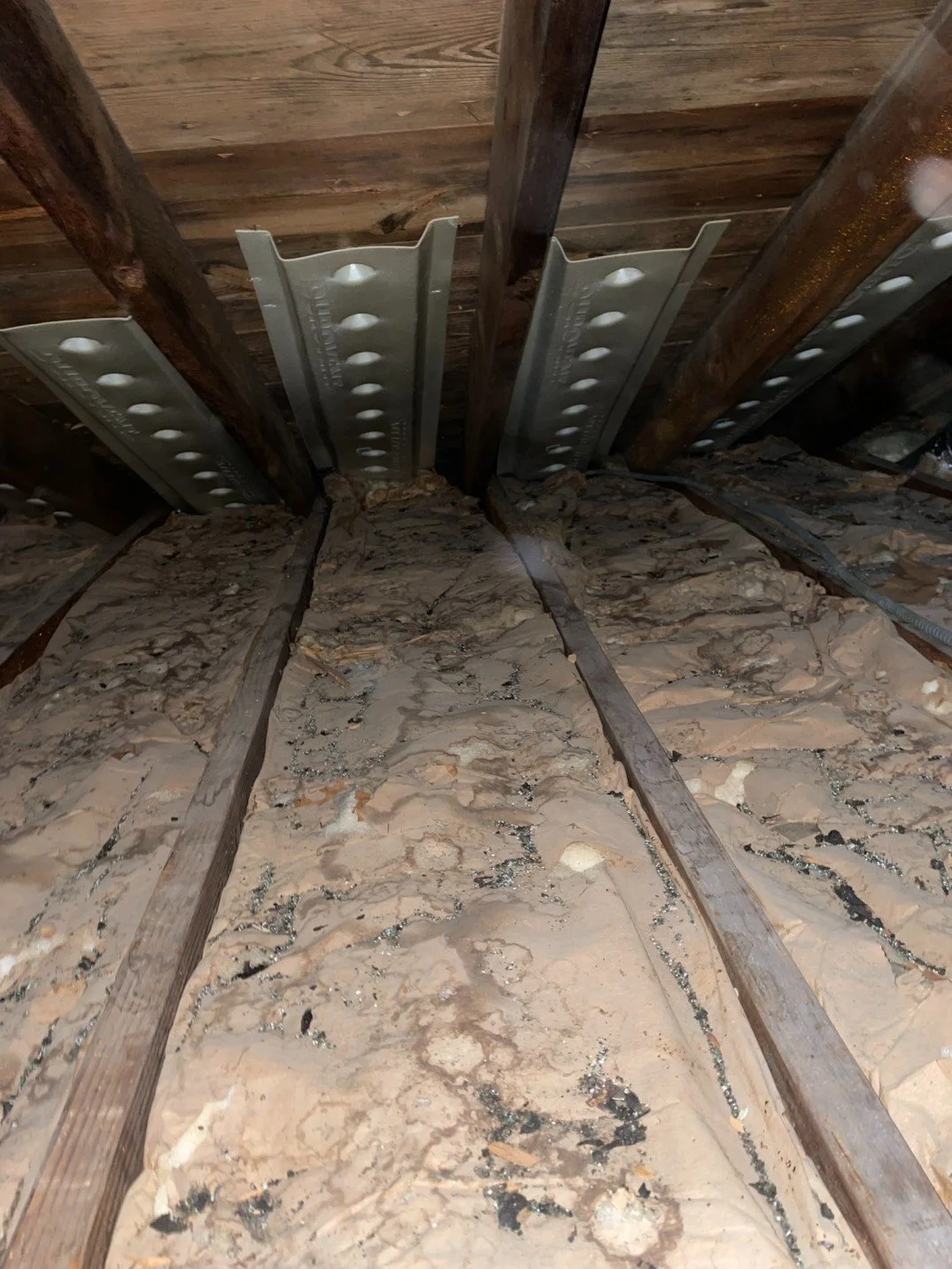 A big reason for the discomfort was how poorly insulated the attic and ductwork were. In the first picture, you can see the main supply line had no insulation! We added loose blown fiberglass until R-49 was reached. This will help to make the home much more comfortable during those 30 and 95 degree days.