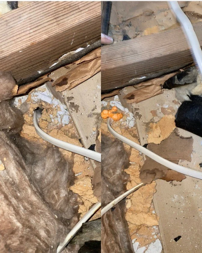 The home was built on cinderblocks and they opened up to the attic at each gable wall. These gaps allow air to escape and were sealed using spray foam.